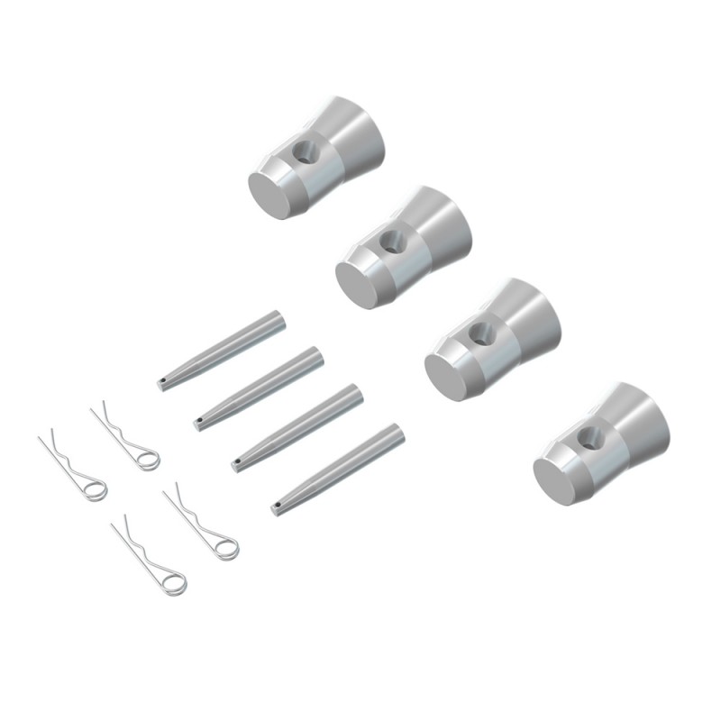 - Set contains 4 conical connectors, 4 conical spigots, 4 screws, 4 safety spring